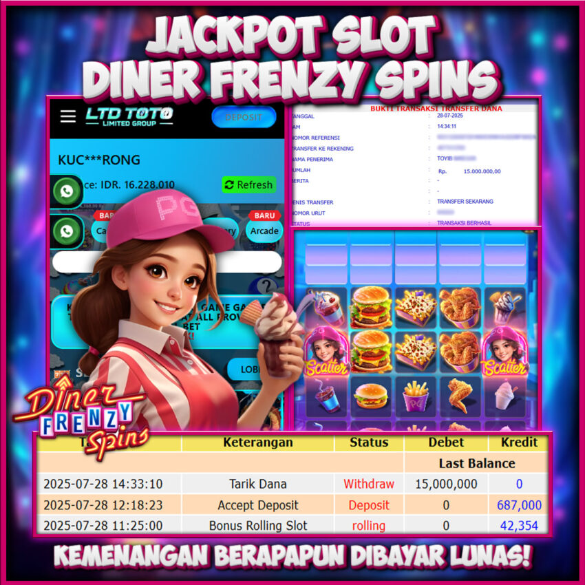 LTDTOTO JACKPOT DINER FRENZY SPINS RP 15.000.000 SENIN 28 JULY 2025