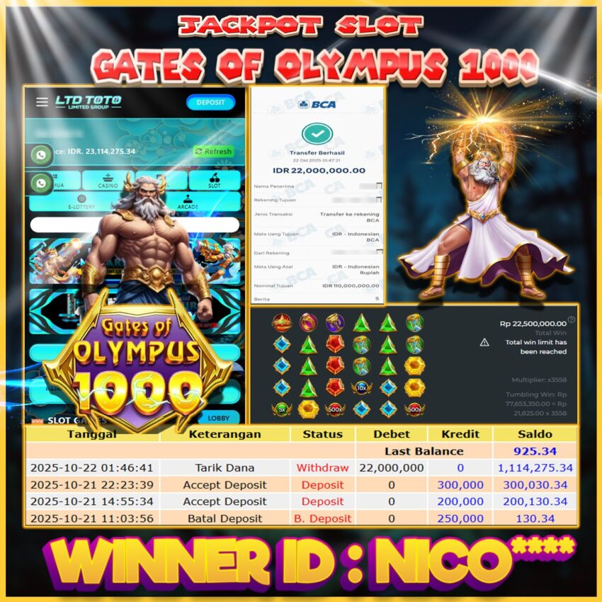 LTDTOTO JACKPOT GATES OF OLYMPUS 1000 RP 22.000.000 RABU 22 OKTOBER 2025