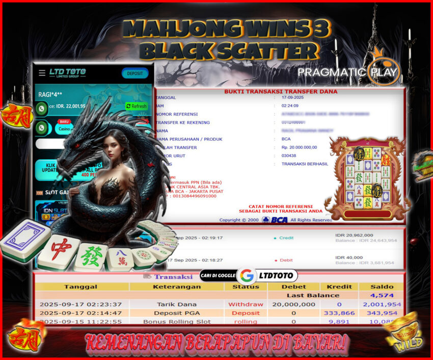 LTDTOTO JACKPOT SLOT MAHJONG WINS 3 BLACK SCATTER RP 20.000.000 RABU 17 SEPTEMBER 2025
