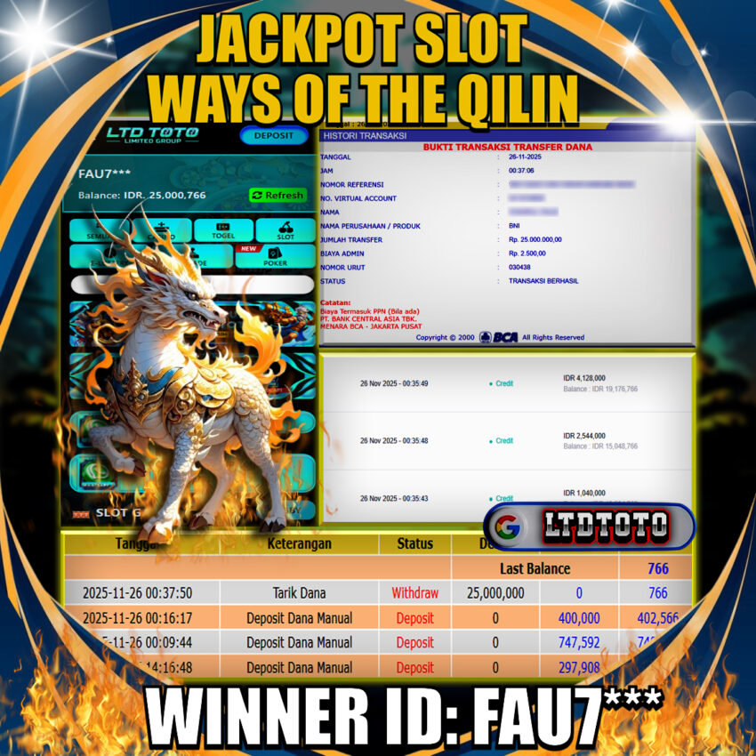 LTDTOTO JACKPOT WAYS OF THE QILIN RP 25.000.000 RABU 26 NOVEMBER 2025