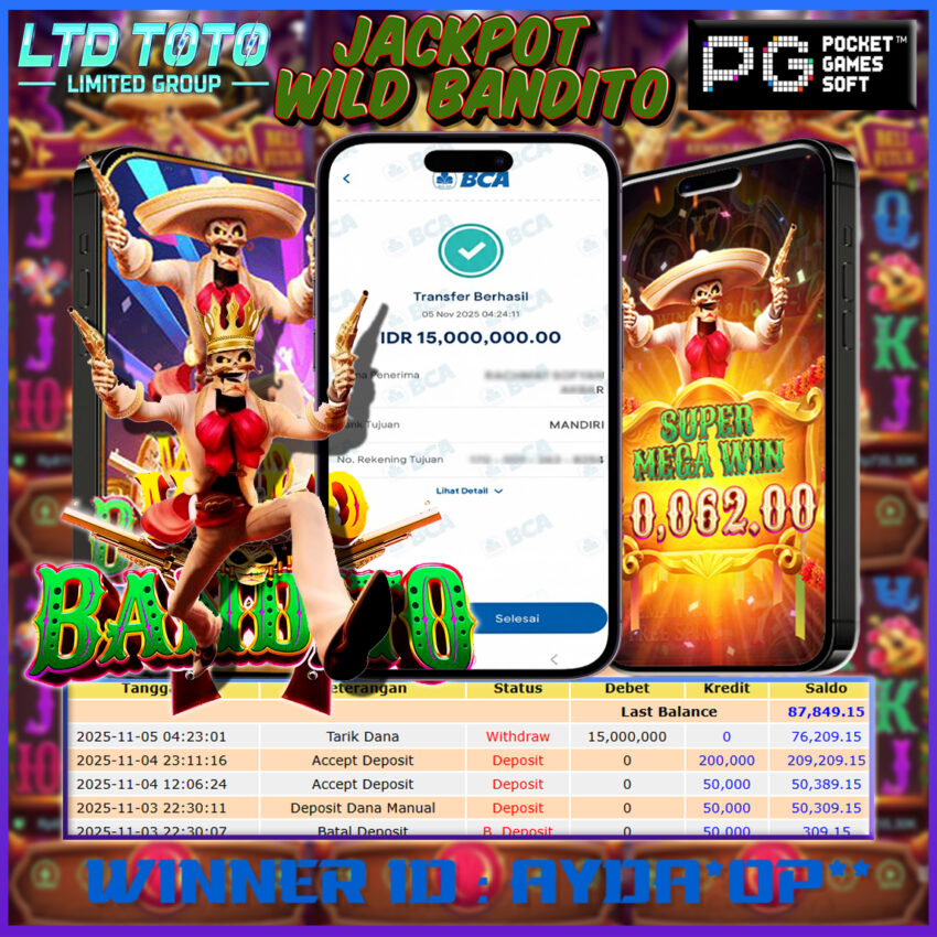 LTDTOTO JACKPOT WILD BANDITO RP 15.000.000 DI BAYAR LUNAS!