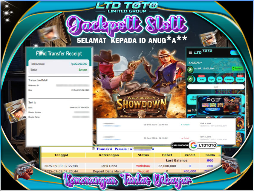 LTDTOTO JACKPOT WILD BOUNTY SHOWDOWN RP 22.000.000 SELASA 09 SEPTEMBER 2025